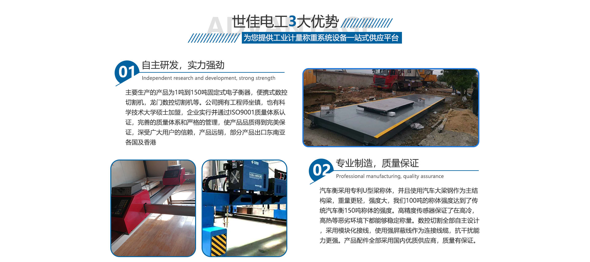 合肥世佳电工设备有限公司是生产、销售工业自动化设备。主要生产的产品为1吨到150吨固定式电子衡器,便携式数控切割机,龙门数控切割机等。公司拥有工程师坐镇,也有中国科学技术大学硕士加盟,完善的质量体系和严格的管理,使产品品质得到保证,深受广大用户的信赖,产品各地可售,部分产品出口东南亚各国及香港,数控切割设备也在安徽处于前列。我们并不满足现在所取得的成就,公司继续加大科研投入,正在和中科大物理研究所科研人员共同研究开发下一代衡器控制仪表,希望以技术作为突破口,将公司做大做强,为中华崛起尽自己一份绵薄之力?;队愦罂突Ю闯Р喂鄱┗蹩疾臁?